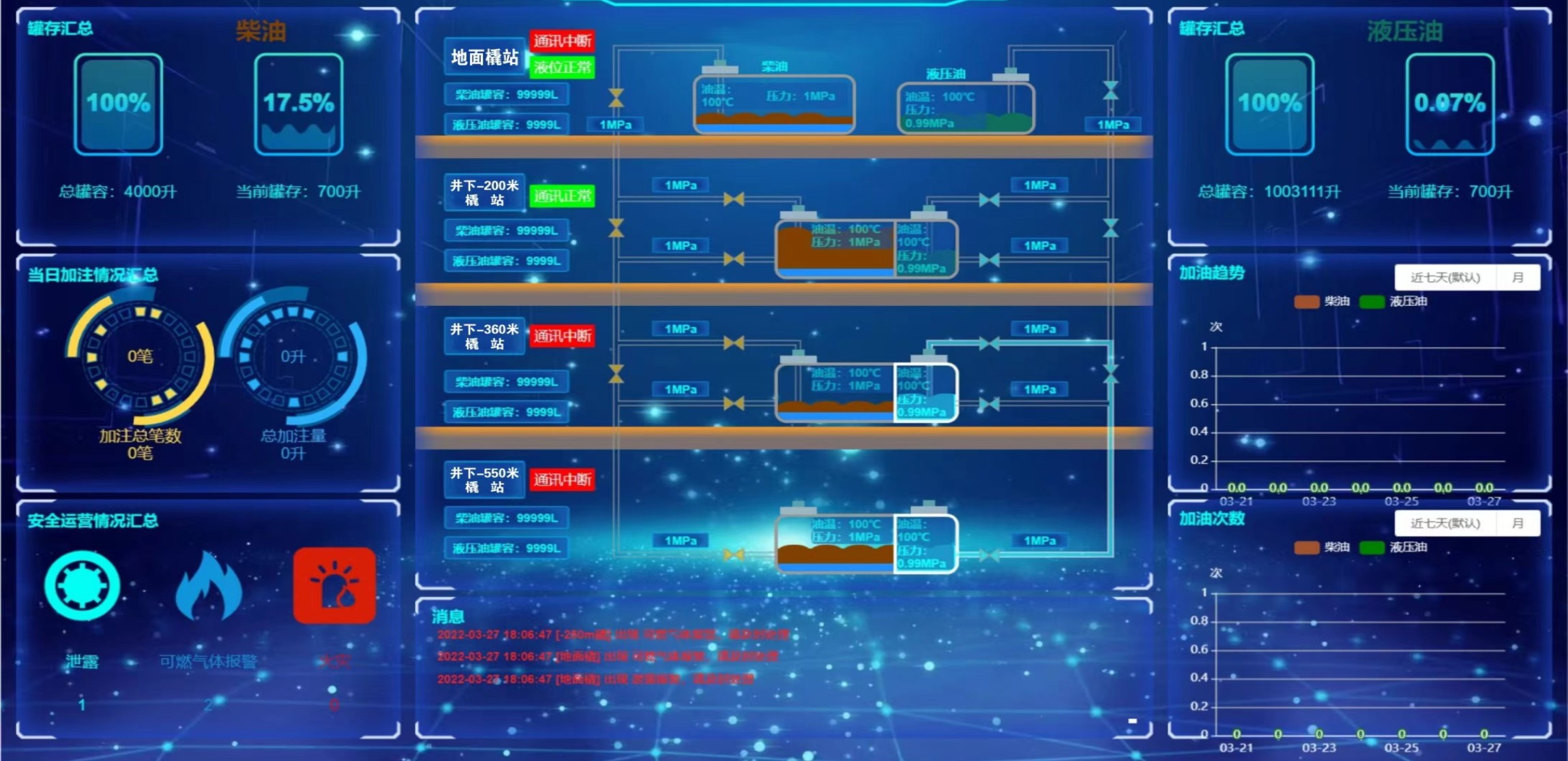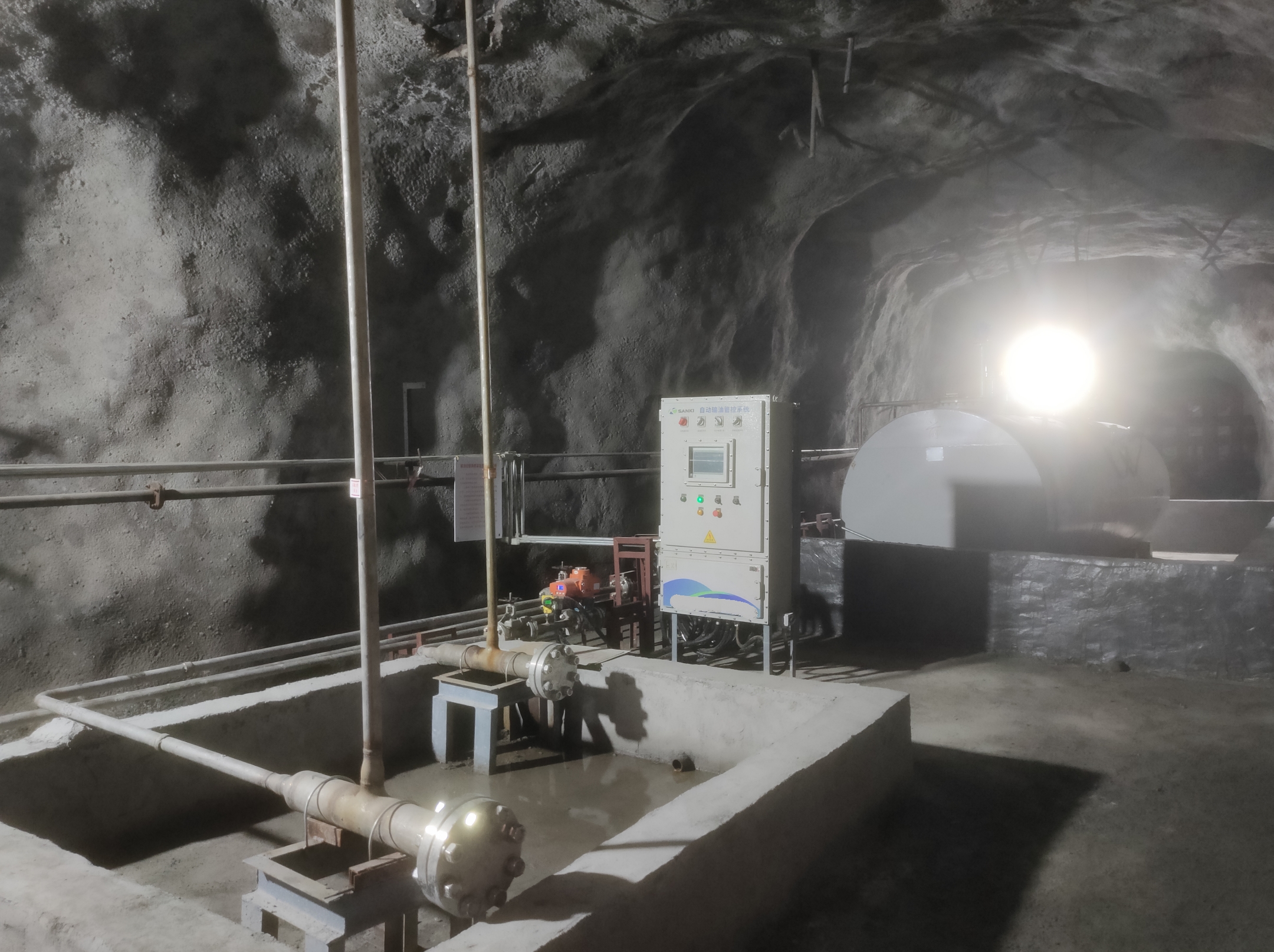 凡口鉛鋅礦井下680米智能供油系統(tǒng) 目前正有序施工中, 預(yù)計9月底完工并投入使用。該項目為全國首創(chuàng), 由韶關(guān)企業(yè)進行技術(shù)攻堅 并申請多項國家專利, 擬申報吉尼斯世界紀(jì)錄 “全球最深的智能供油系統(tǒng)”。 凡口鉛鋅礦井下智能供油系統(tǒng) 需在地面設(shè)置橇裝加油裝置, 并分別在地下 330米、480米和680米處 建設(shè)智能化供油系統(tǒng), 通過鉆孔鋪設(shè)輸油管線, 將油品從地面輸送到井下。 地下330米智能加油點, 目前已進入收尾階段, 現(xiàn)場有兩根 從地面裝置接下來的輸油管, 用于工程車加油, 另一邊也有兩根輸油管輸送到 地下480米和680米的智能加油點。 別看油管很細(xì),鉆孔不大, 但施工難度并不小, 全長3千多米的輸油管, 垂直打孔偏差不能超過1米。 作為亞洲最大的 單體鉛鋅銀礦生產(chǎn)基地, 凡口鉛鋅礦 有井下工程車輛和設(shè)備100多臺, 井下用油量大。 井下智能化供油系統(tǒng)啟用后, 不僅解決井下用油安全、環(huán)保風(fēng)險, 同時降低生產(chǎn)用油成本, 推進凡口鉛鋅礦建設(shè)智能化礦山, 實現(xiàn)“無人開采”。 如果鉆孔偏差太大,就找不到鉆下來的孔,影響輸油管道的布設(shè),增大成本。3千多米有5千多個焊接點,所有的焊接口都要達到高壓管道的焊接要求,這個項目是全國首創(chuàng),在全國所有礦山企業(yè)中,我們是首次使用通過輸油管道往井下輸油,并且實現(xiàn)智能控制的方案。 這個月底把地下330米加油點完工,開始加油,9月底把底下480米和680米開通使用。希望通過這個項目打造創(chuàng)新科技的韶關(guān)樣板,把先進的經(jīng)驗和技術(shù)推廣到全省、全國乃至全球。